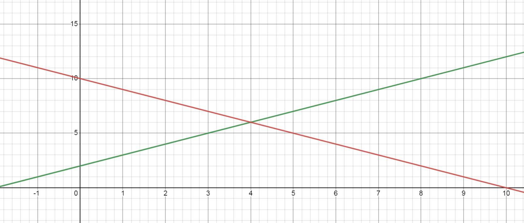 Далее находим точке пересечения прямых. Это точка (4;6)