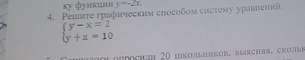 4. Решите графическим способом систему уравнений: (y-x=2 (y+x=10 книг каждый из них прочел за про-