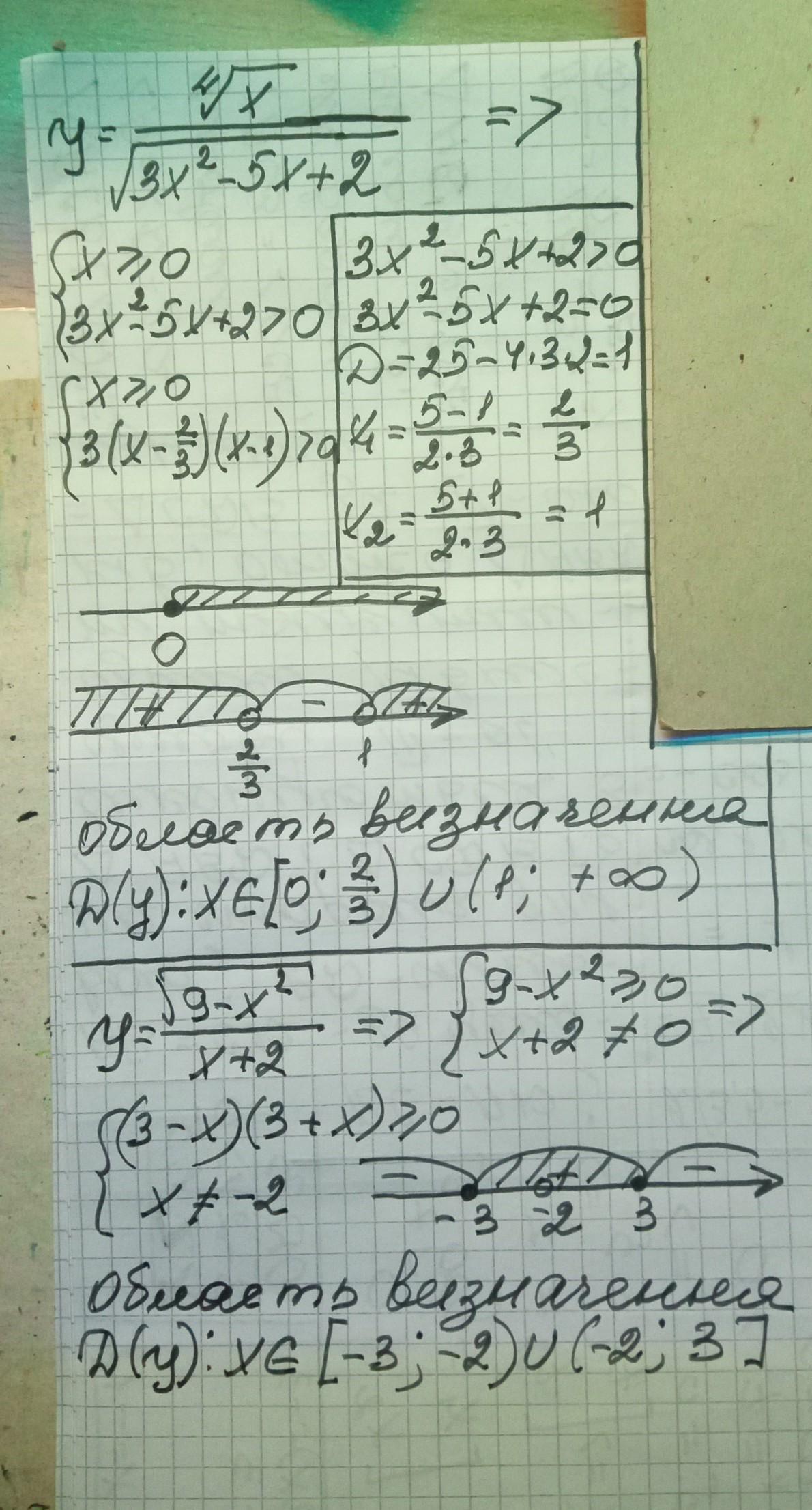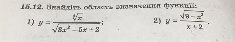 Знайдіть область визначення функції у=^4√х / √3х^2-5х+2