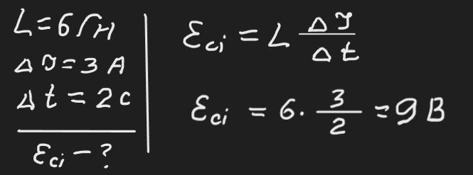 Визначити EPC самоіндукції яка виникає в котушці індивідуальністю 6 Гн під час зміни сили струму на 3 А за 2 с.