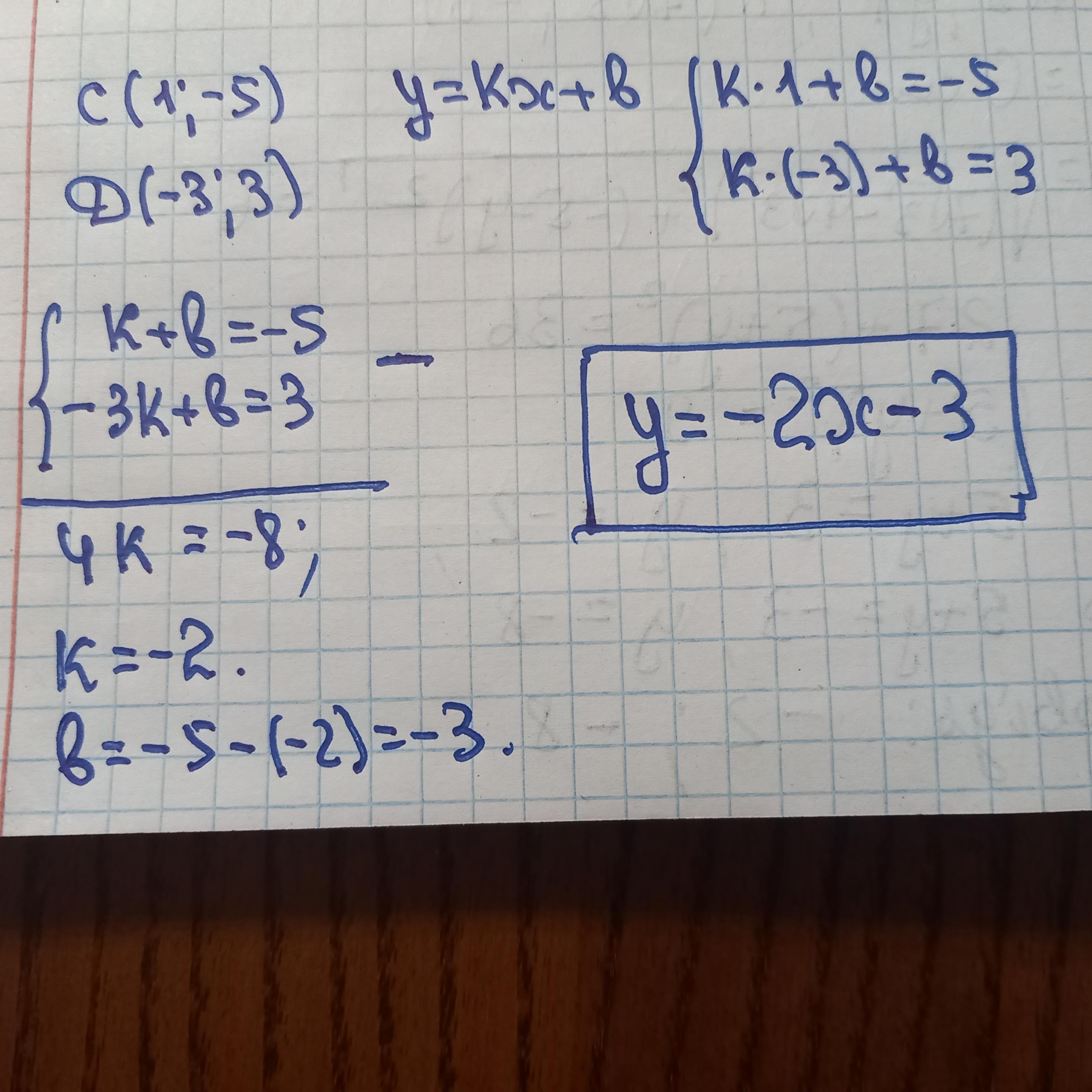 Складіть рівняння прямої яка проходить через точки С (1;-5) і D(-3;3)
