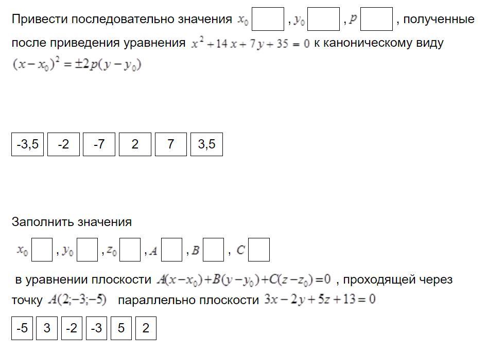 2. Заполнить значения в уравнении плоскости проходящей через точку параллельно плоскости