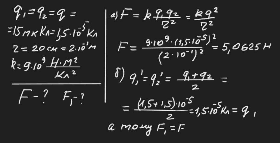 Відповідь: а)5,0625 Н б) сила взаємодії в порівнянні з початковою не зміниться