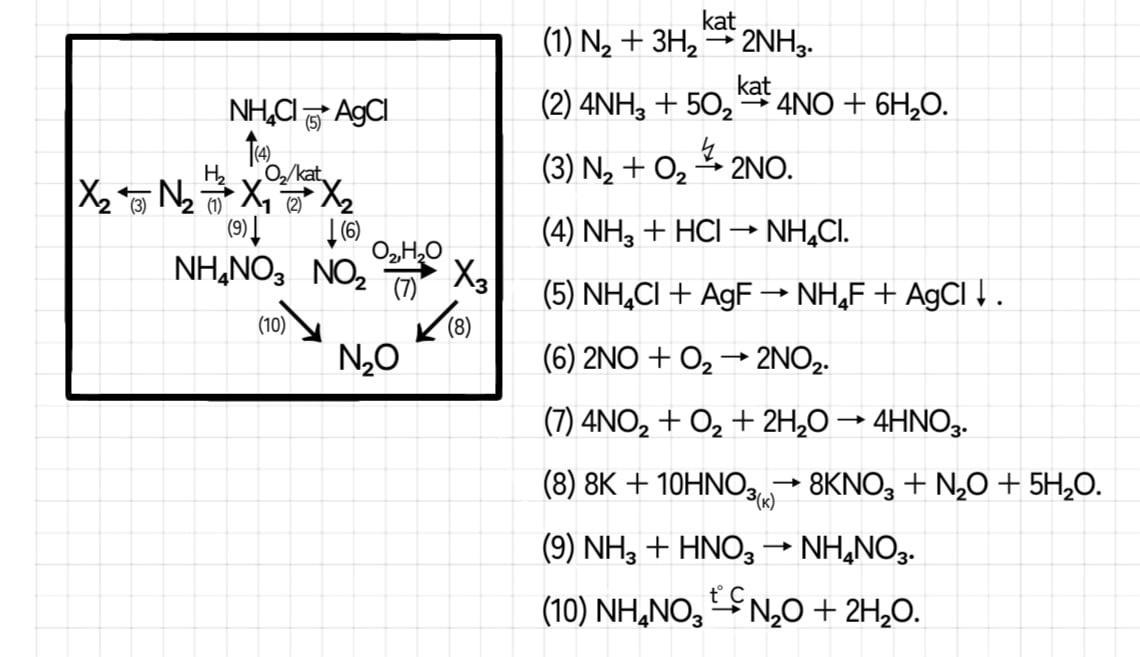 X1 == NH3 ; X2 == NO ; X3 == HNO3