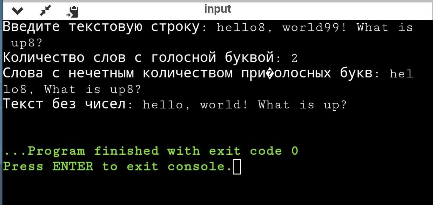 cout << "Слова с нечетным количеством приголосных букв: " << words_odd_consonants << endl;