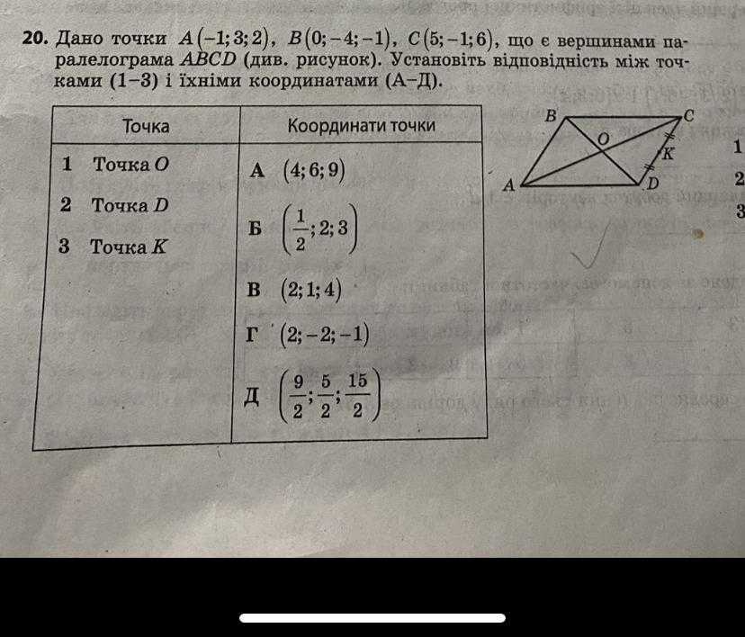 С(5; -1; 6) вершини паралелограма.