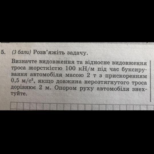 троса жорсткістю 100 кН/м пiд час буксирування автомобіля масою 2 т з прискоренням
