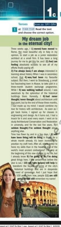 Use of English b) HA11 Identify the tenses in bold in Ex. 1a. Explain how we use each. k z 11 What tense do we use after time words (when, by the time, until, before, after, etc) to refer to the future? Find an example in the text, then write two more examples of your own.