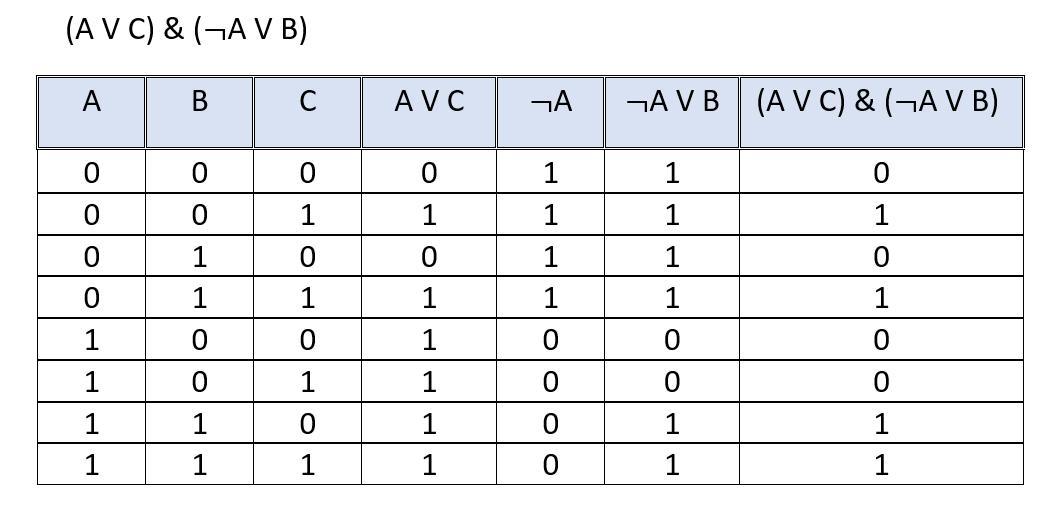 (A V C) & (¬A V B)