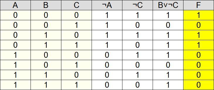 Затем, выполняете по порядку лог. операции из этого выражения (и результаты для каждой заносите в свой столбец. Последний из этих столбцов будет содержать результаты последней лог. операции - они же и есть результаты для всей функции F.
