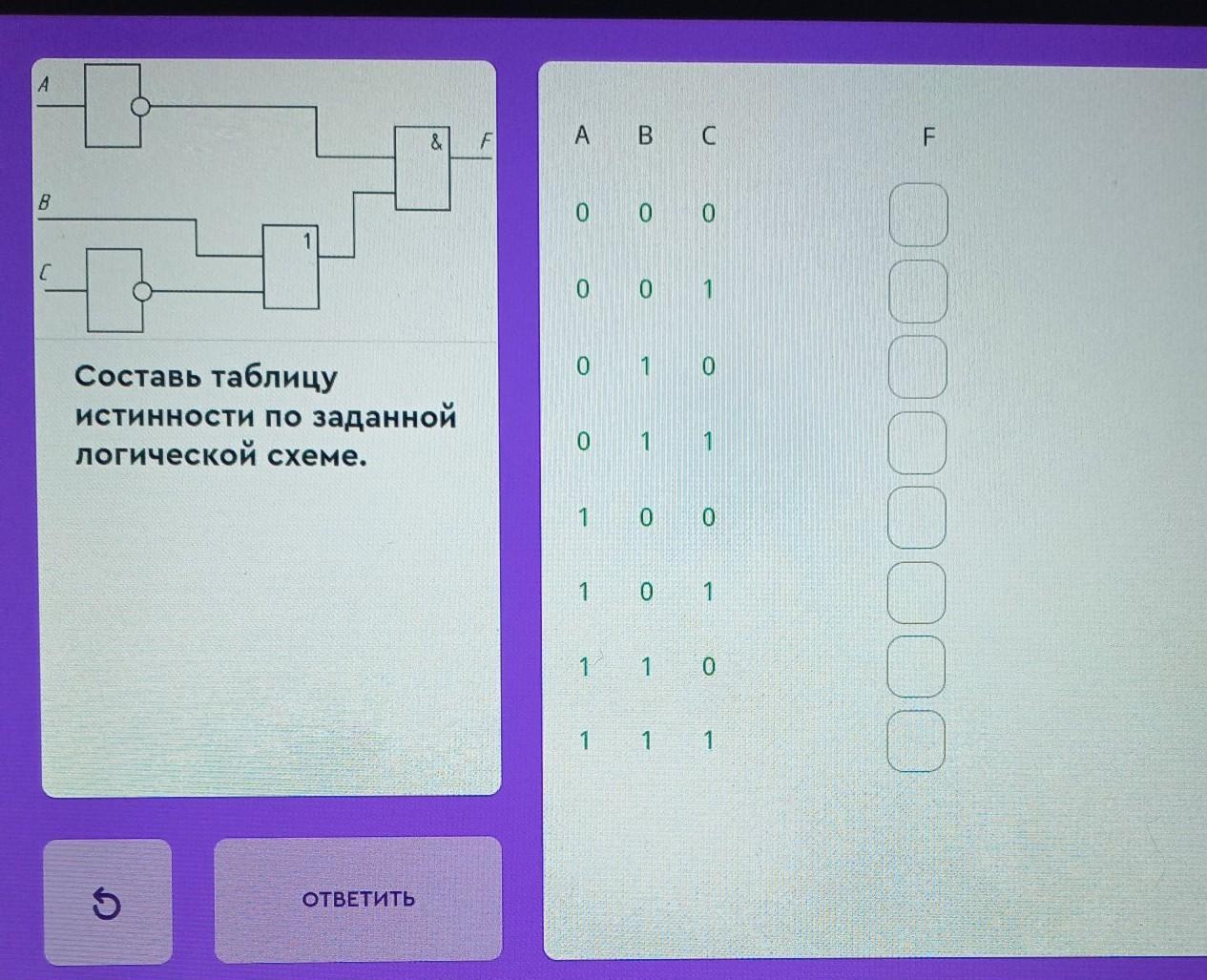 Её начало уже записано в задании - это три столбца с входными сигналами (A, B, C).