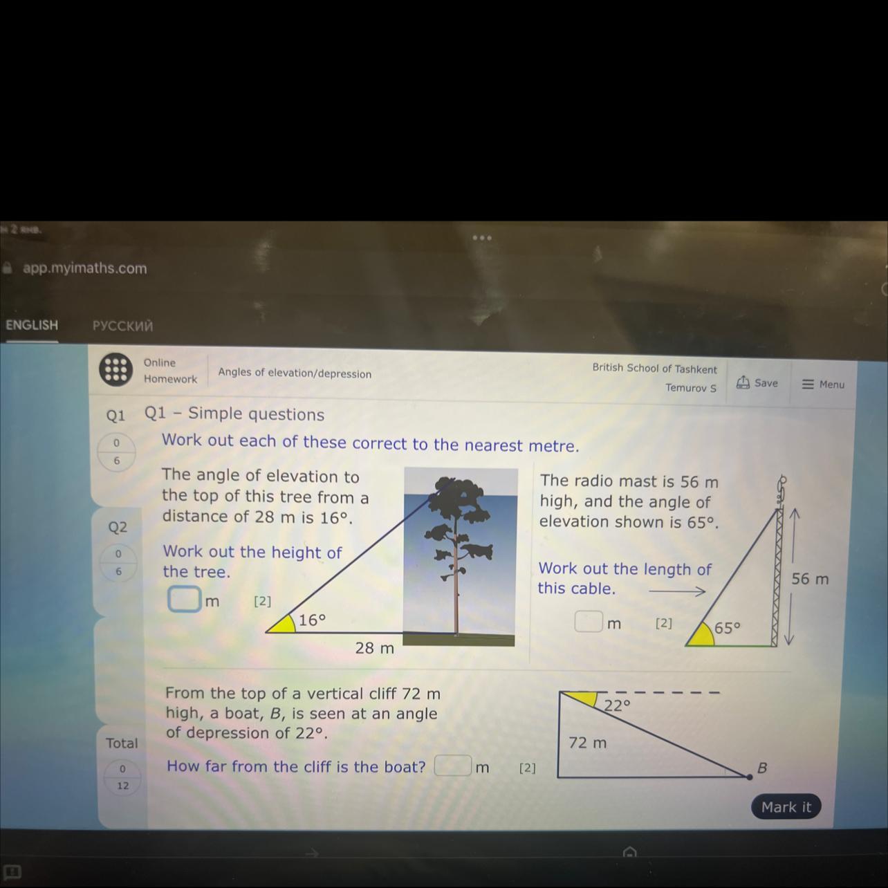 h=28*0,2867≈8,0276≈8m height ot the tree