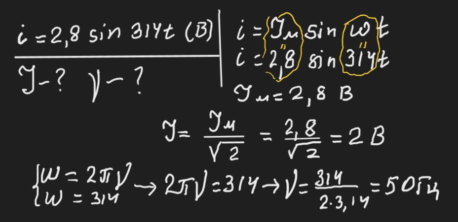 Сила струму в колі змінного струму змінюється за законом I = 2,8sin314t. Яке діюче значення цього струму і яка його частота ? Будь ласка з дано розв'язанням і обчисленням, даю 50 балів