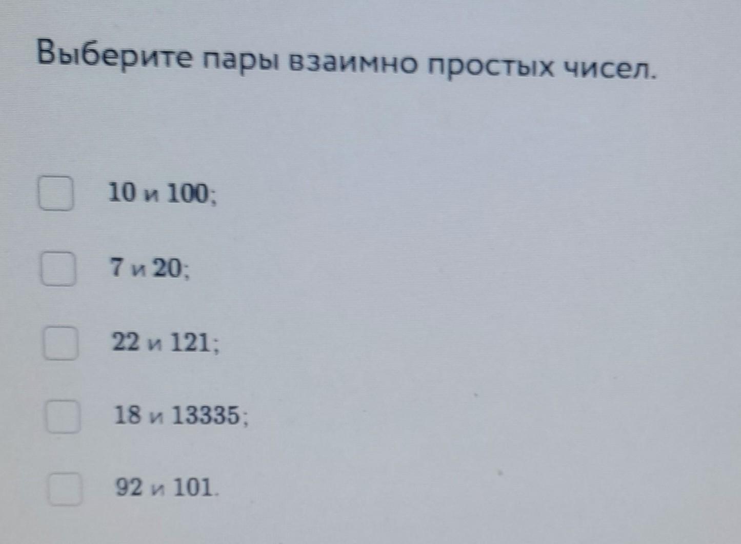 7 и 20 92 и 101 это пары взаимно простых чисел