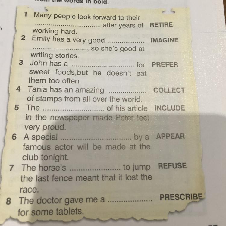 However, she enjoyed teaching a lot, so she wasn't 5) happy . She taught in a primary school for forty years and when she retired she joined a club in order to meet more people and managed to make friends 6) easily. I still have some of the paintings which she gave to me years ago.