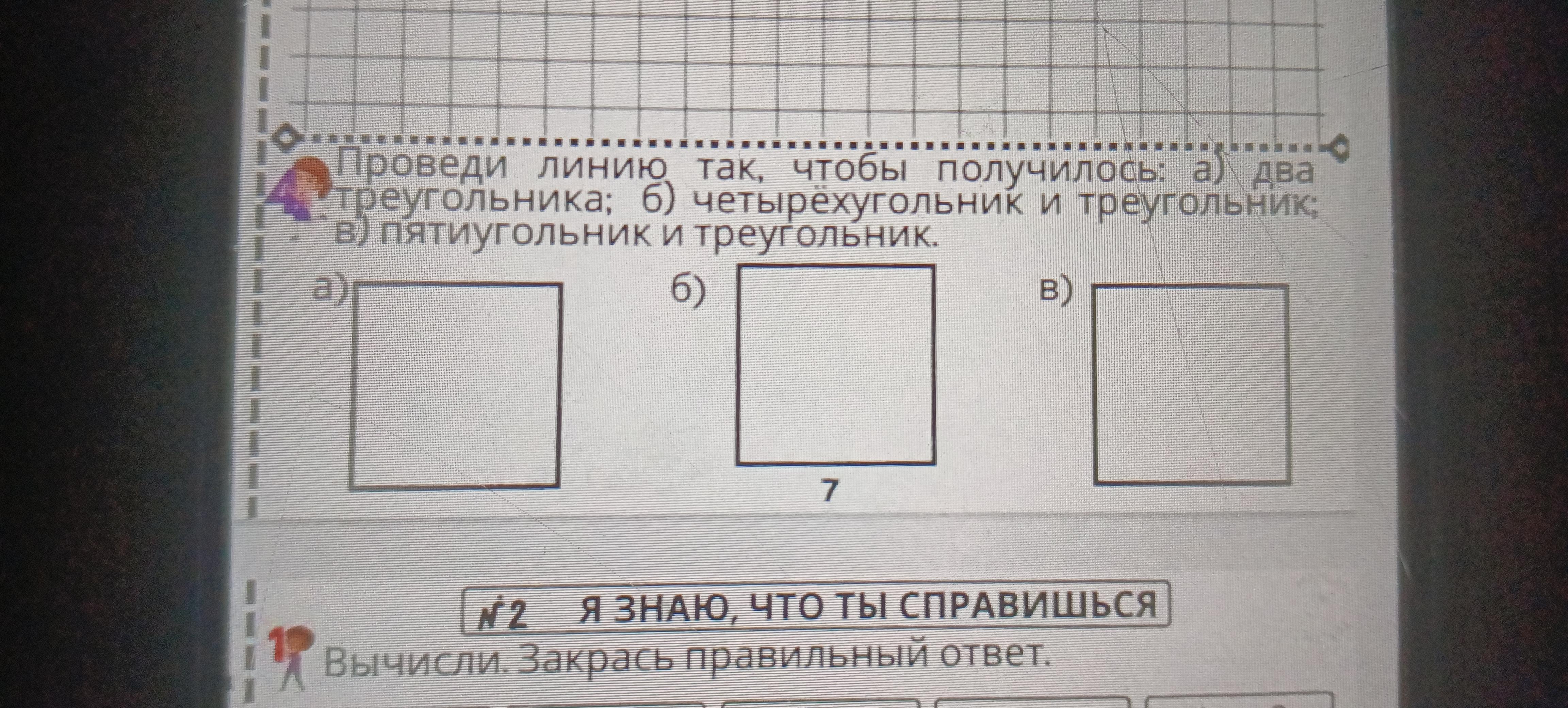 Там все легко, в первом тебе нужно провести горизонталь из любого угла.