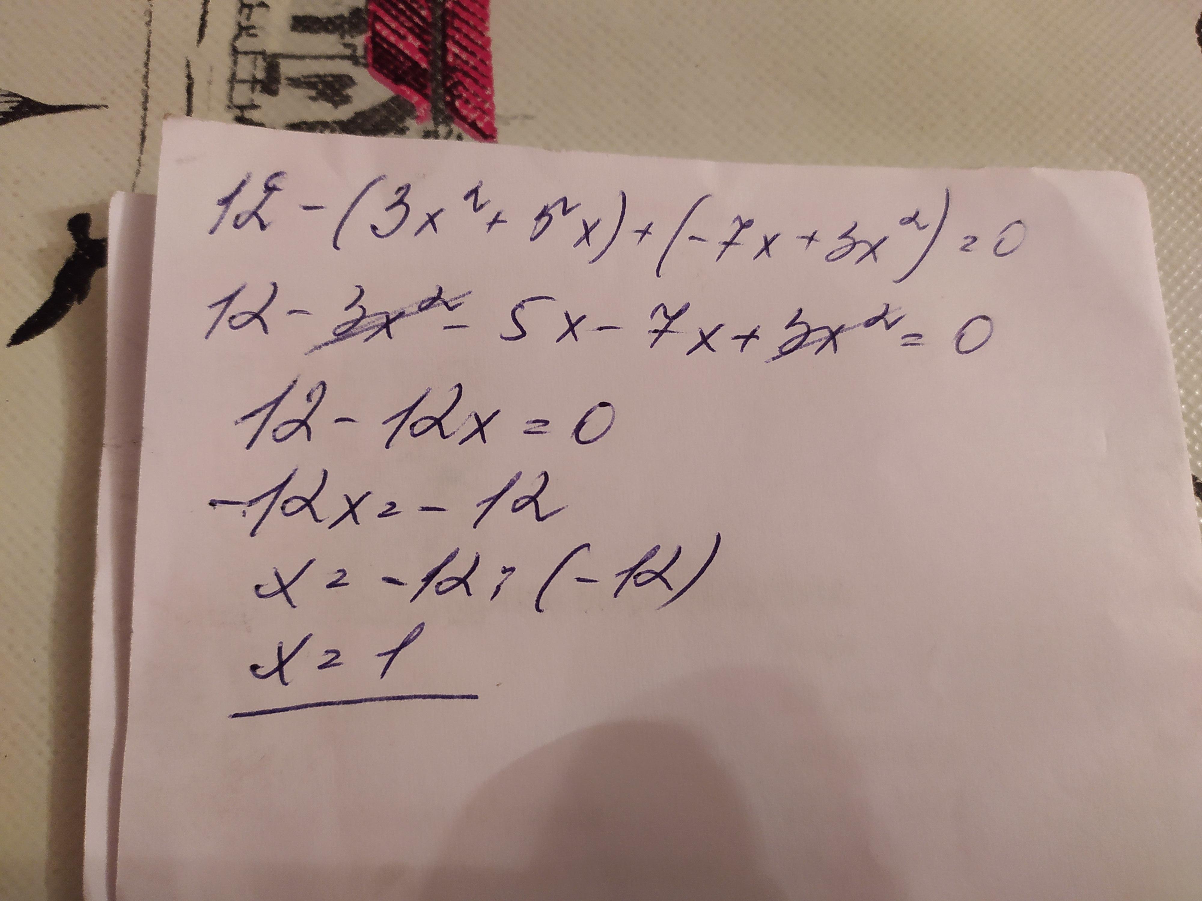 12 - (3х² + 5х) + (-7х + 3х²) = 0