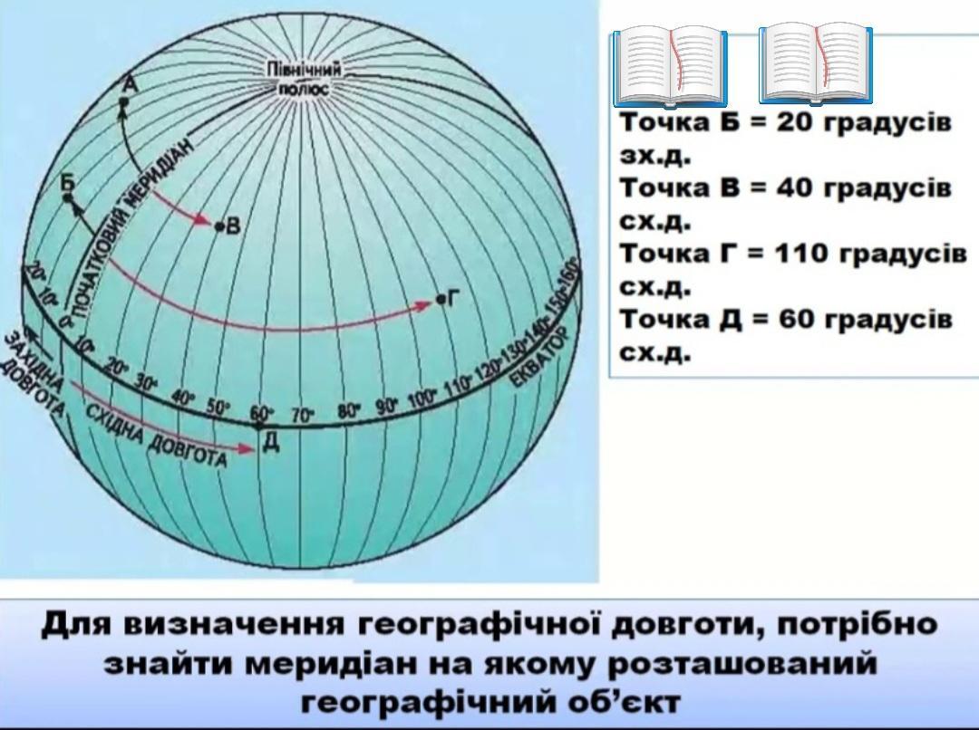 За мал. 56 на с. 66 визначте географічну довготу точок Б, В, Г, Д.