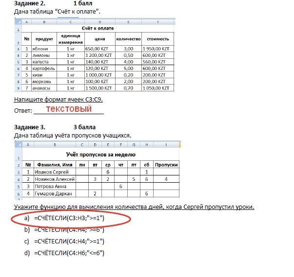 Суммативное оценивание за раздел «Обработка информации в электронных таблицах»