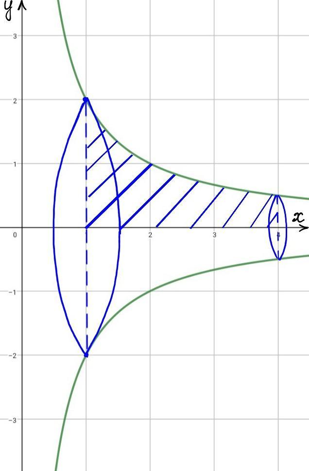 Вычислить объем тела, образованного вращением плоской фигуры вокруг оси ох: y = 2/x; y = 0; xє[1;4]