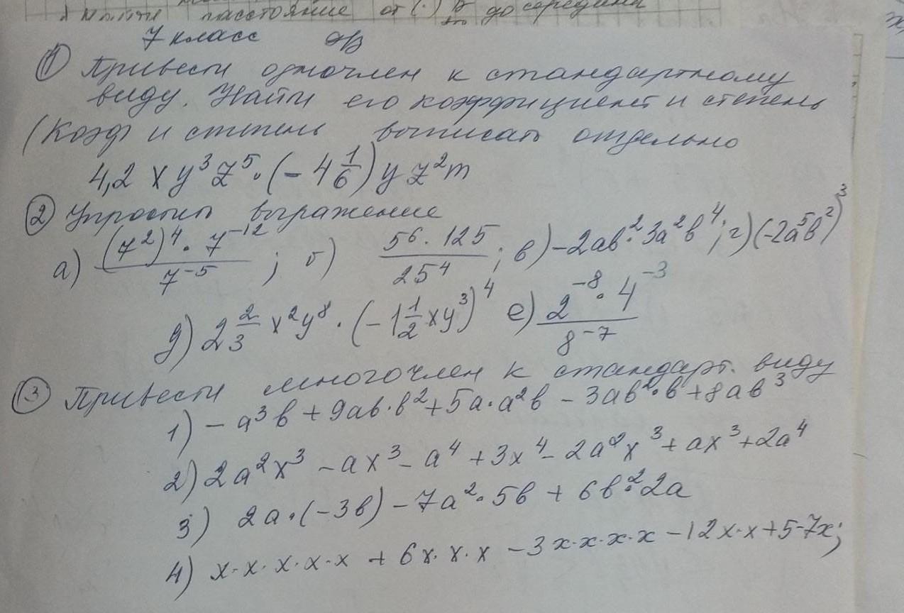 Перевести одночлен стандартному виду. найти его коэффициент и степень (коэф и степень выписать отдельно) 4,2xy^3z^5*(-4 1/6) yz^2m