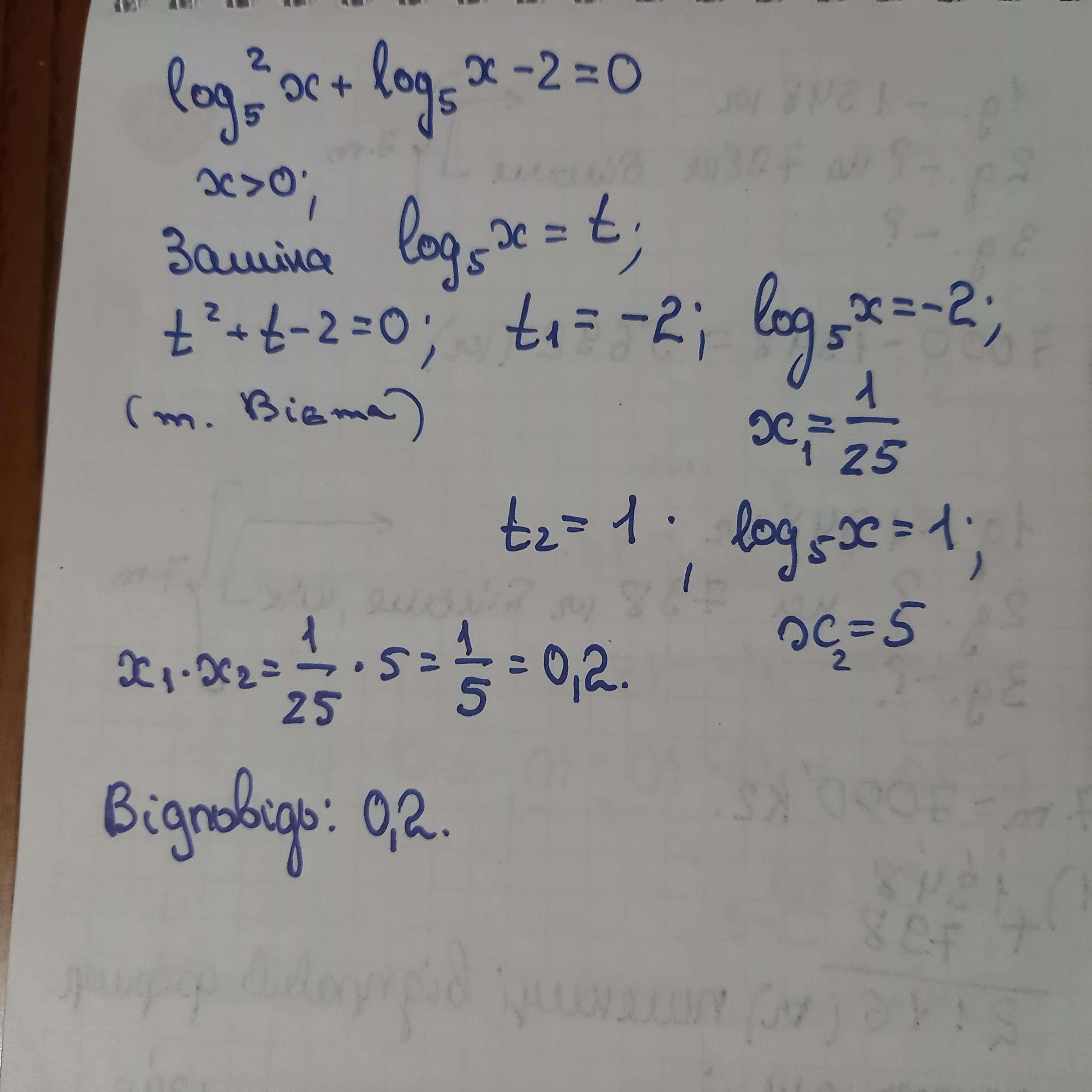 знайти добутки коренів рівняння log5²x+log5-x-2=0