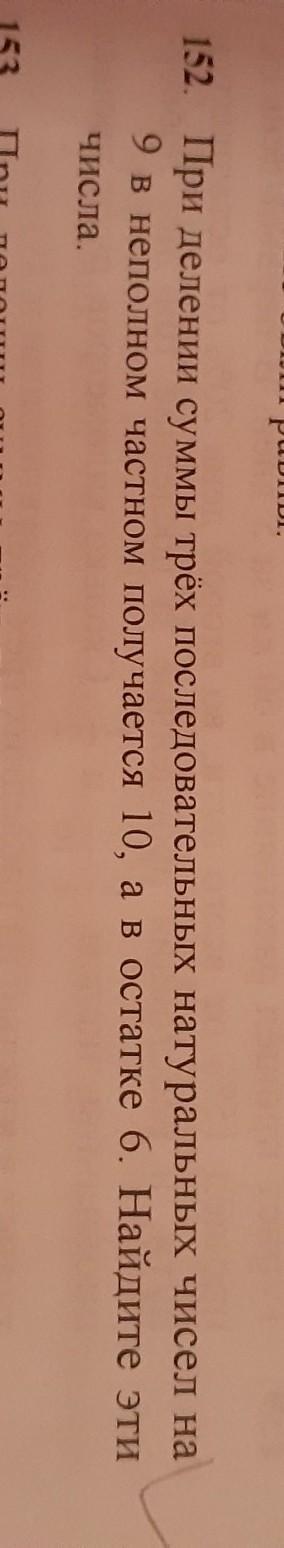 При делении суммы трех последовательных натуральных чисел на 9 в неполном частном будет 10 , а в остатке 6. Найти эти числа.
