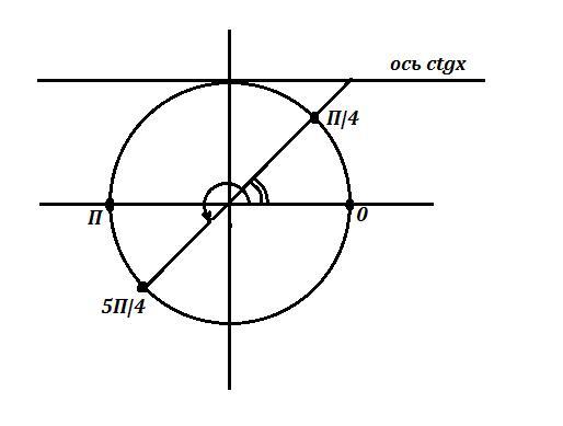 Являются ли π/4 и 5π/4 абсциссами точкой пересечения графиков функций y=cosx/sinx и y=1? Укажите абсциссы точки разрыва в промежутке [0;2π]
