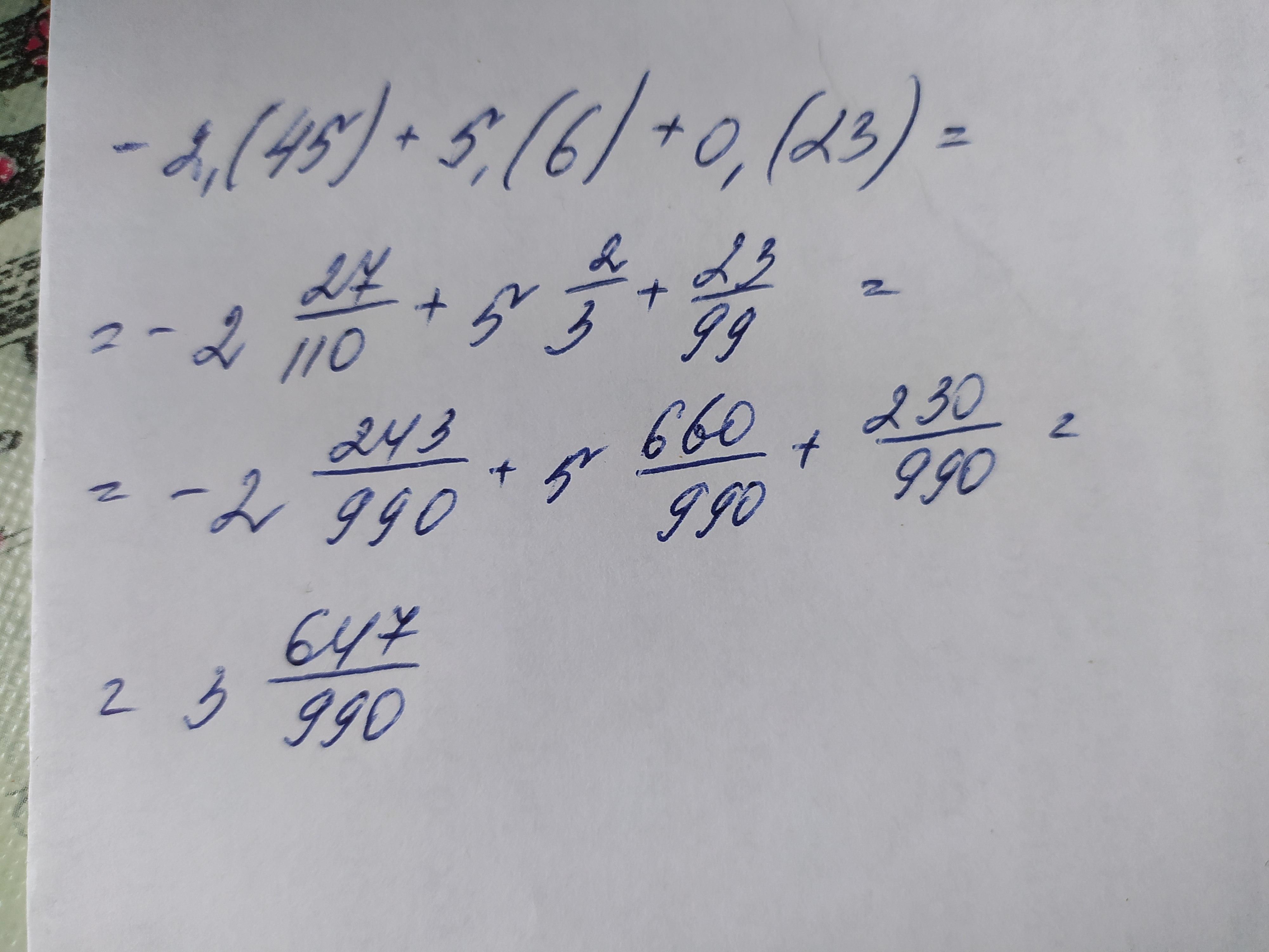 −2, (45) + 5, (6) + 0, (23)