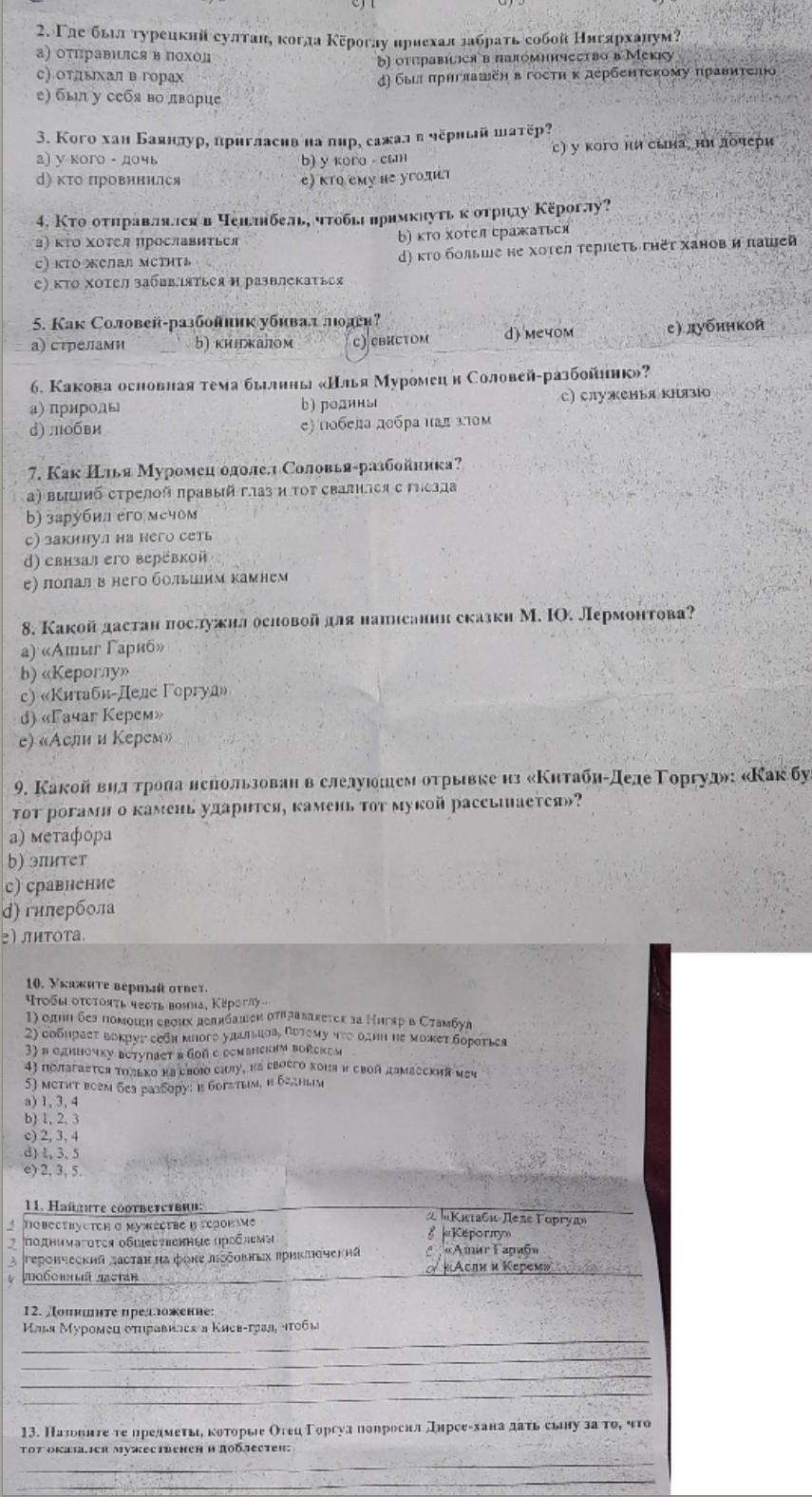 14)Напишите,как Кёроглу хитростью удалось украсть Нигяр-ханум из гранатового сада.15)Заполните диаграмму Эйлера-Венна,сопоставив образы Бугач-хана и Кёроглу