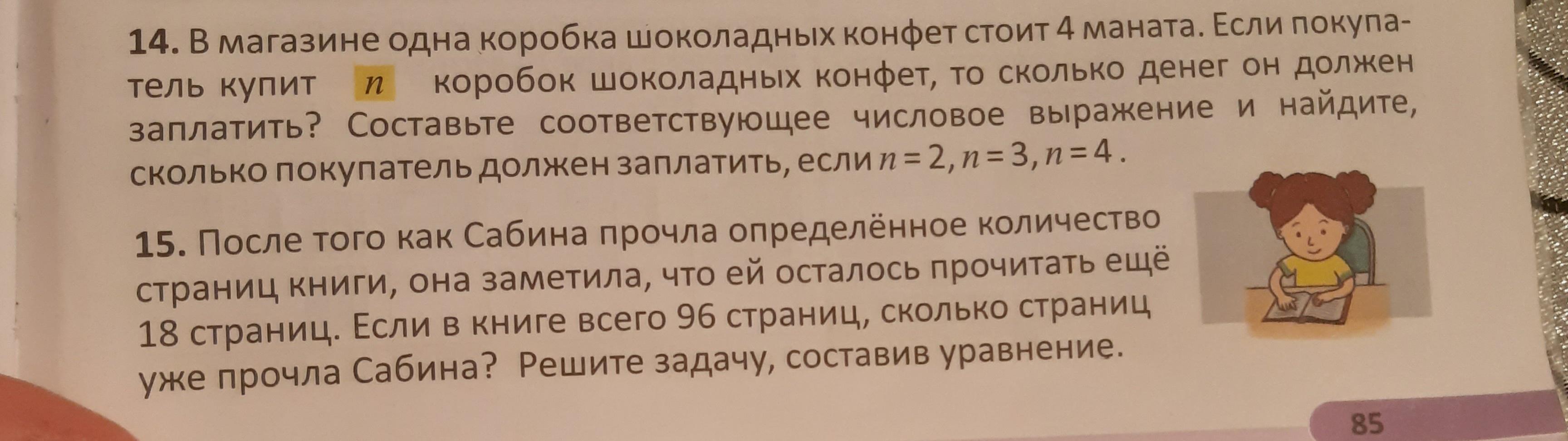 14) 1 коробка конфет стоит 4 маната