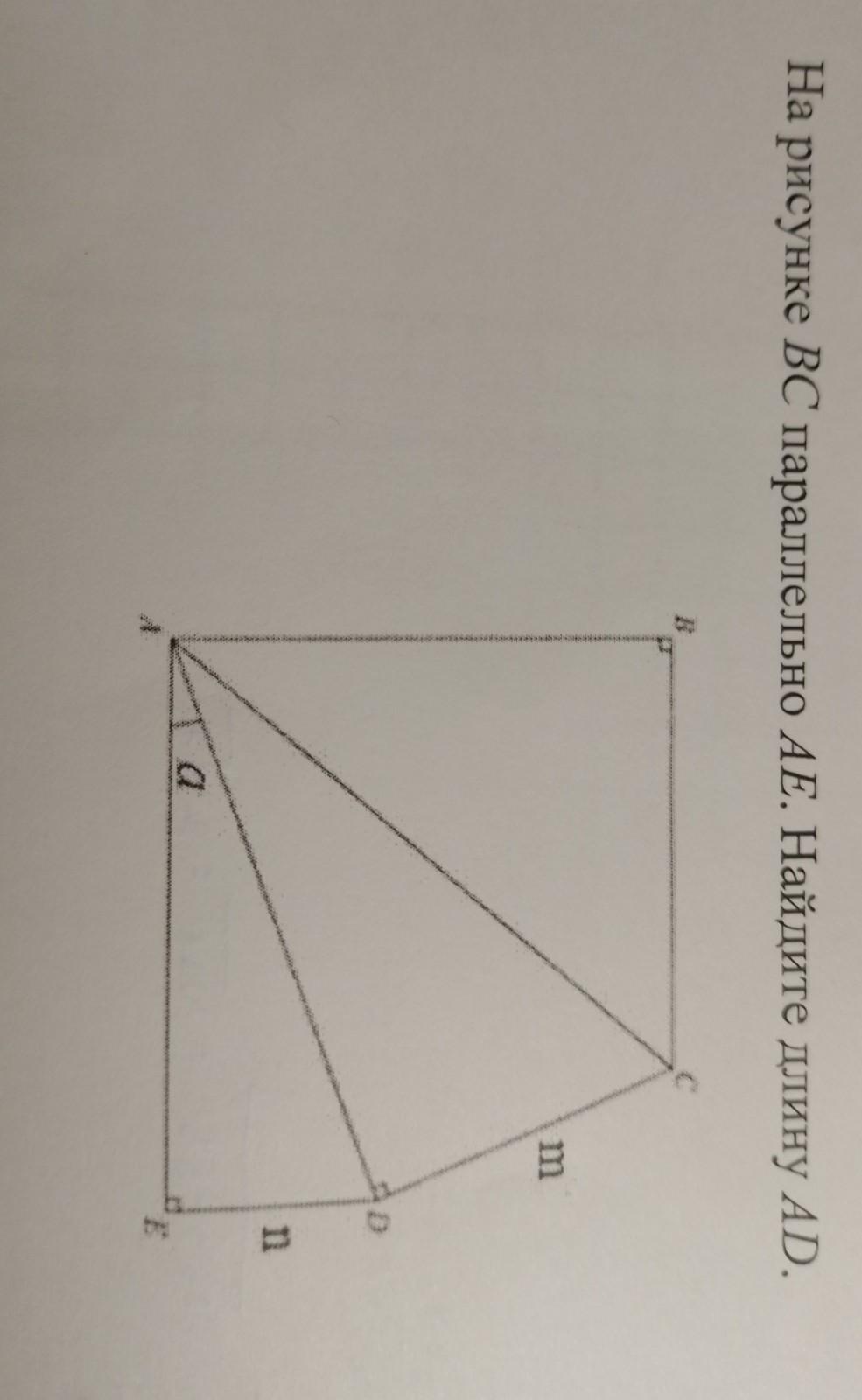 Дано: BC║AE, ∠DEA = 90°, DE = n, ∠DAE = α