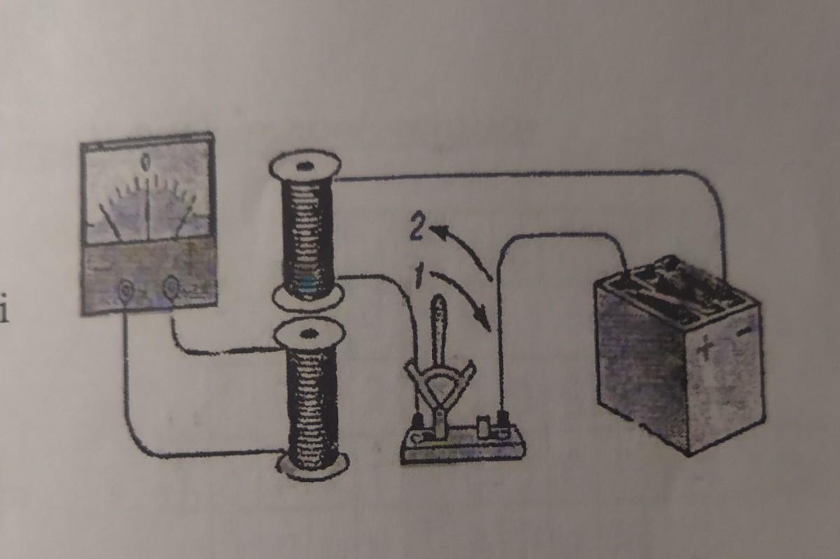 Поясніть, що буде спостерігатися під час досліду, показаного на рисунку, під час замикання і розмикання ключа.(фото)