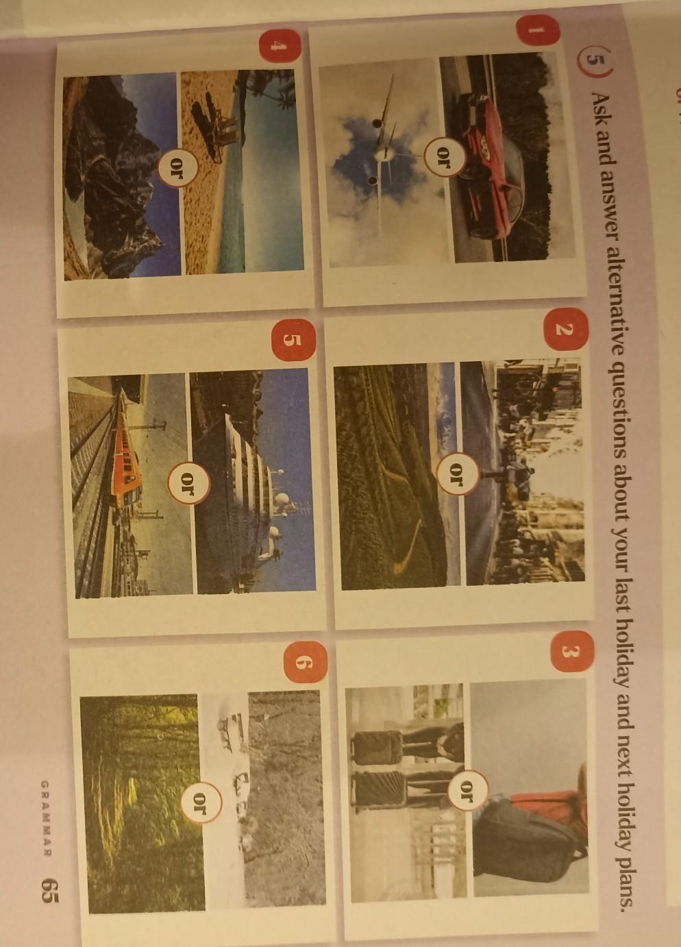 (5) Ask and answer alternative questions about your last holiday and next holiday plans.