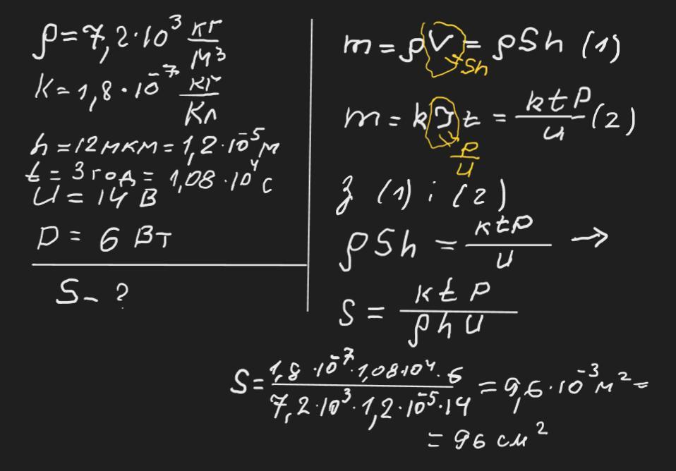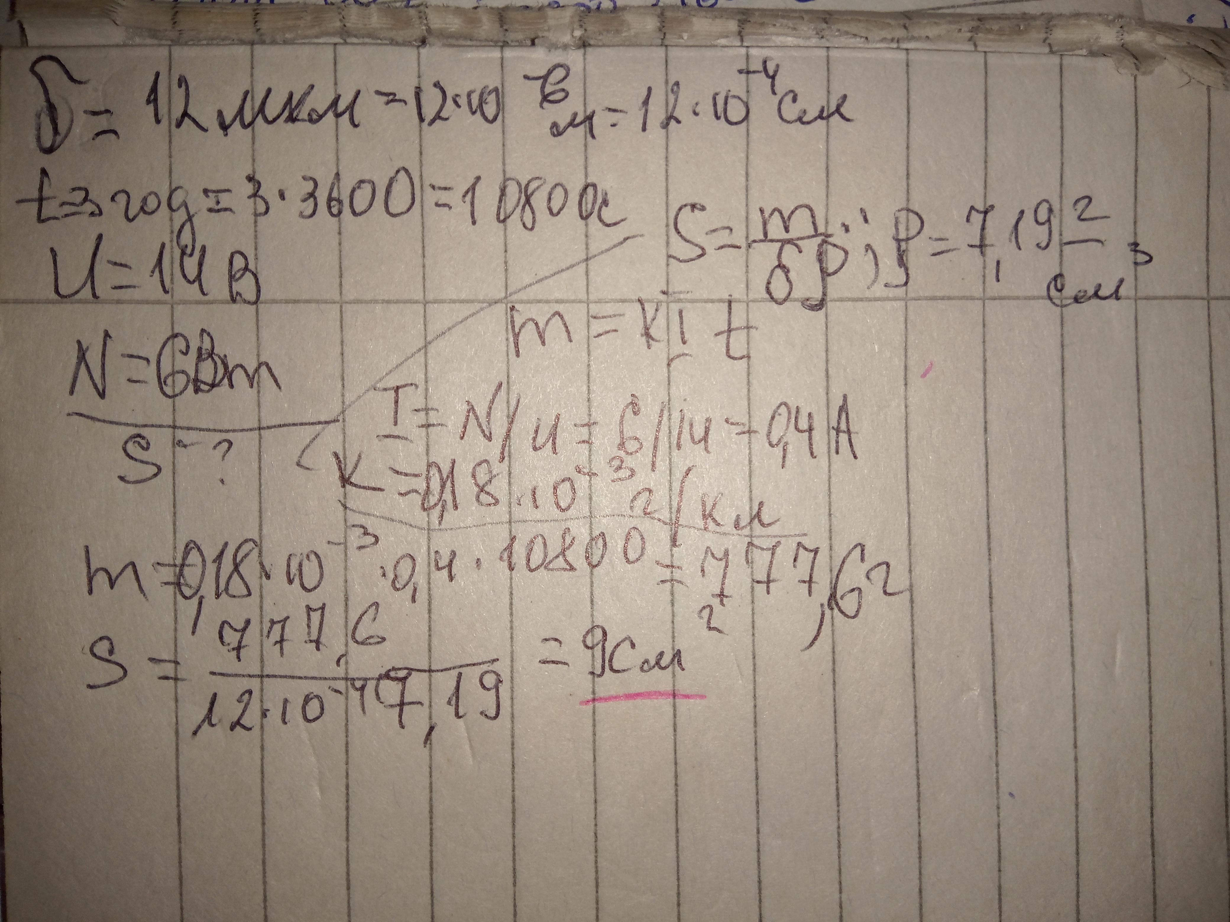 мкм. Визначте площу поверхні деталі, якщо електроліз тривав 3 год. Напруга