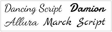 Эти шрифты лучше всего использовать для дополнения декоративных элементов дизайна. При использовании курсивных шрифтов будьте особенно осторожны при использовании их в заголовках и основной части веб-сайта, так как их чтение может быть довольно сложным процессом.