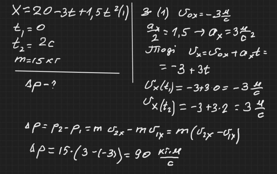 Δр=15*3-15*(-3)=45-(-45)=90кг*м/с