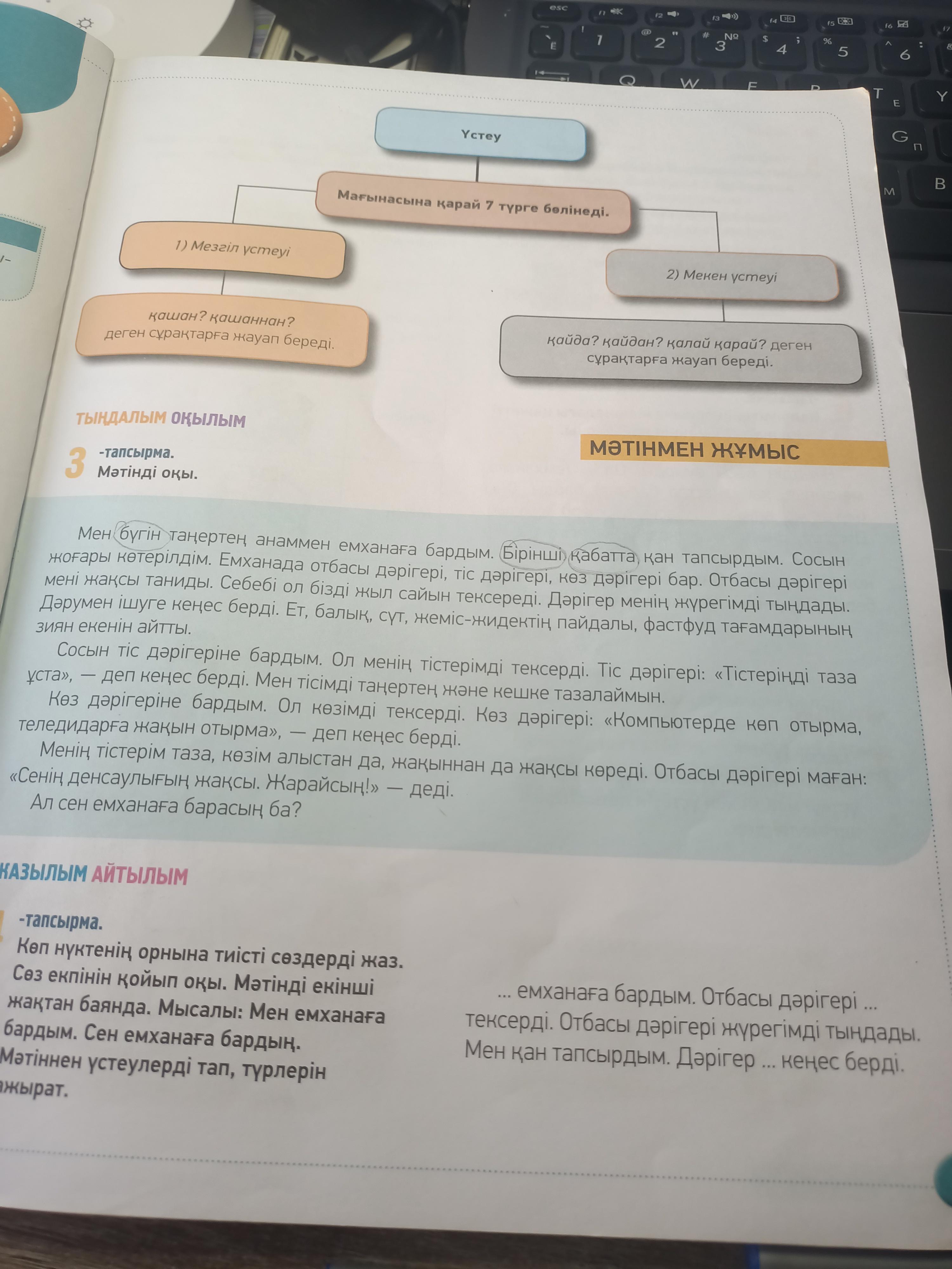 таңертең, емханаға, жыл сайын, дәрігеріне, кешке,емханаға