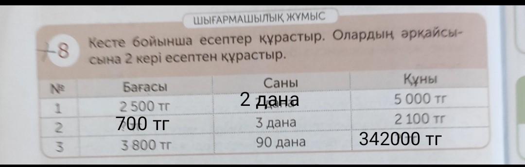 Ответ: 5000:2500 = 2 2100:3=700 3800*90 = 342000