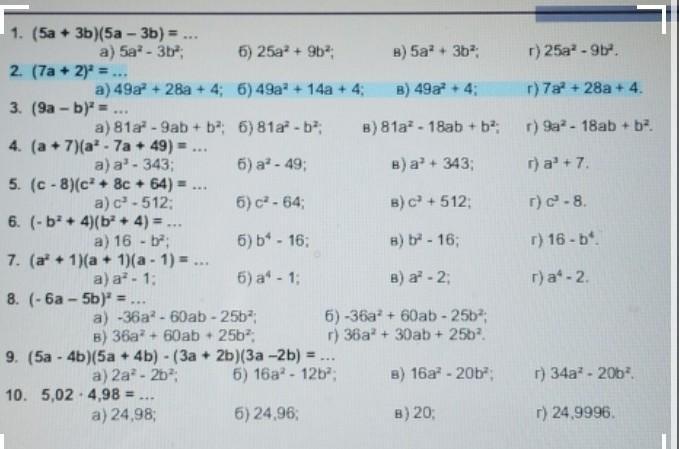 Відповідь:а) 49a2+28a+4