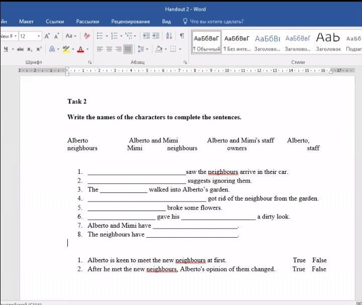 1. Alberto is keen to meet the new neighbours at first. (Вначале Альберто очень хочет познакомиться со своими новыми соседями.)
