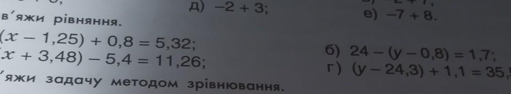 2. Розв'яжи рiвняння. a) (x-1,25) + 0,8 = 5,32, B) (x 3,48) 5,4 = 11,26, 6) 24-(y-03)=17. (y-243)+1,1=355. г)