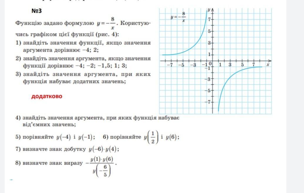 4) функція набуває від'ємних значень при усіх додатніх значень аргумента (виділена жовтим кольором)