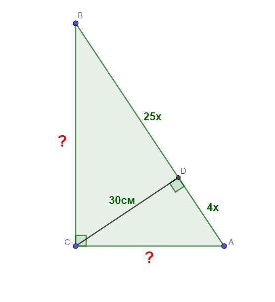 Дано: ΔАВС(∠С=90°), СD⊥AB, CD=30 см, AD:DB=4:25