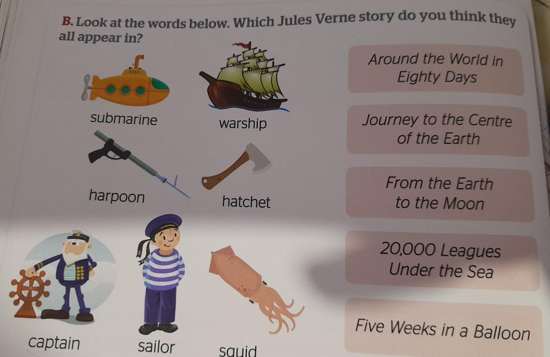 B. Look at the words below. Which Jules Verne story do you think they all appear in?