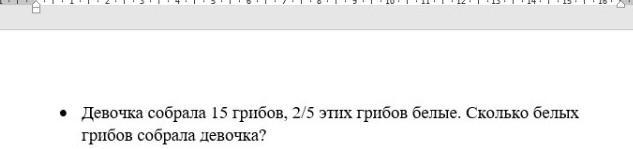 ● Девочка собрала 15 грибов, 2/5 этих грибов белые. Сколько белых грибов собрала девочка?срочно.... даю 30 балов