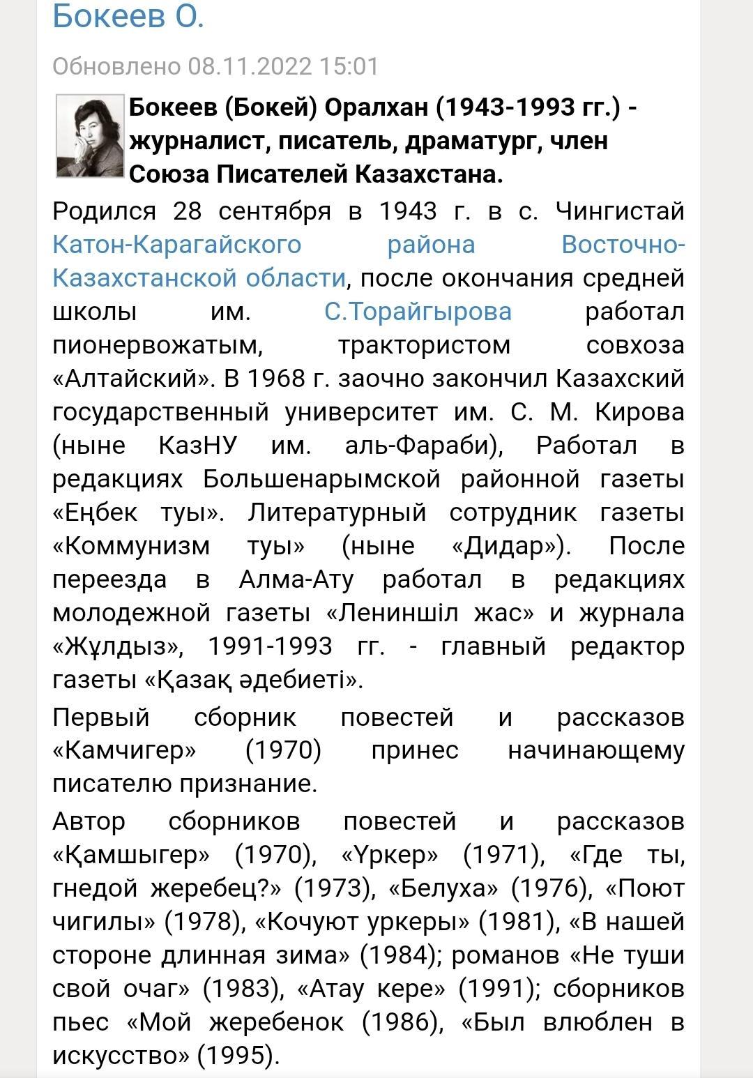 4 Oralkhan Bokeev is a playwright.