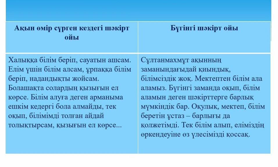 Сұлтанмахмұт заманындағы шәкірттерге бүгінгі заманның шәкірті атынан хат жазыңыздар. Хат көлемі 70-80 сөз.