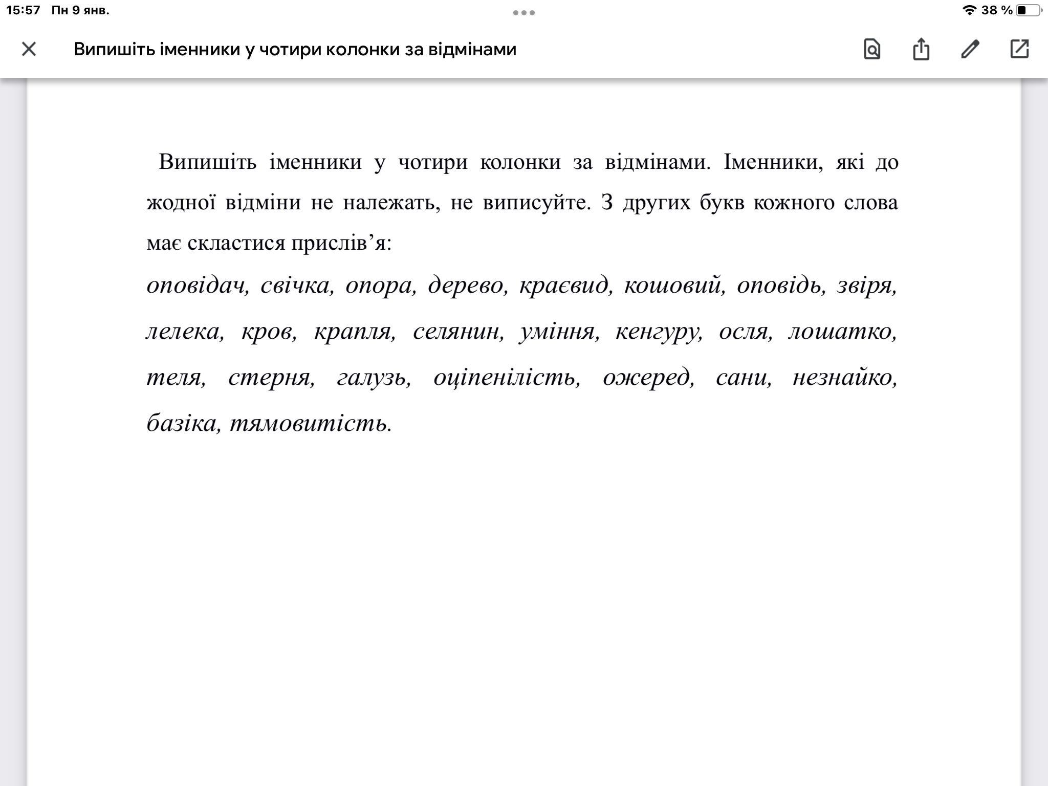 2 відміна - оповідач, дерево, краєвид, селянин, уміння, лошатко, ожеред, незнайко,