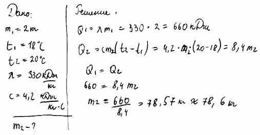 1. В бочку с водой опустили лед массой 2 кг при температуре 0 °С. Сколько воды было в бочке,
